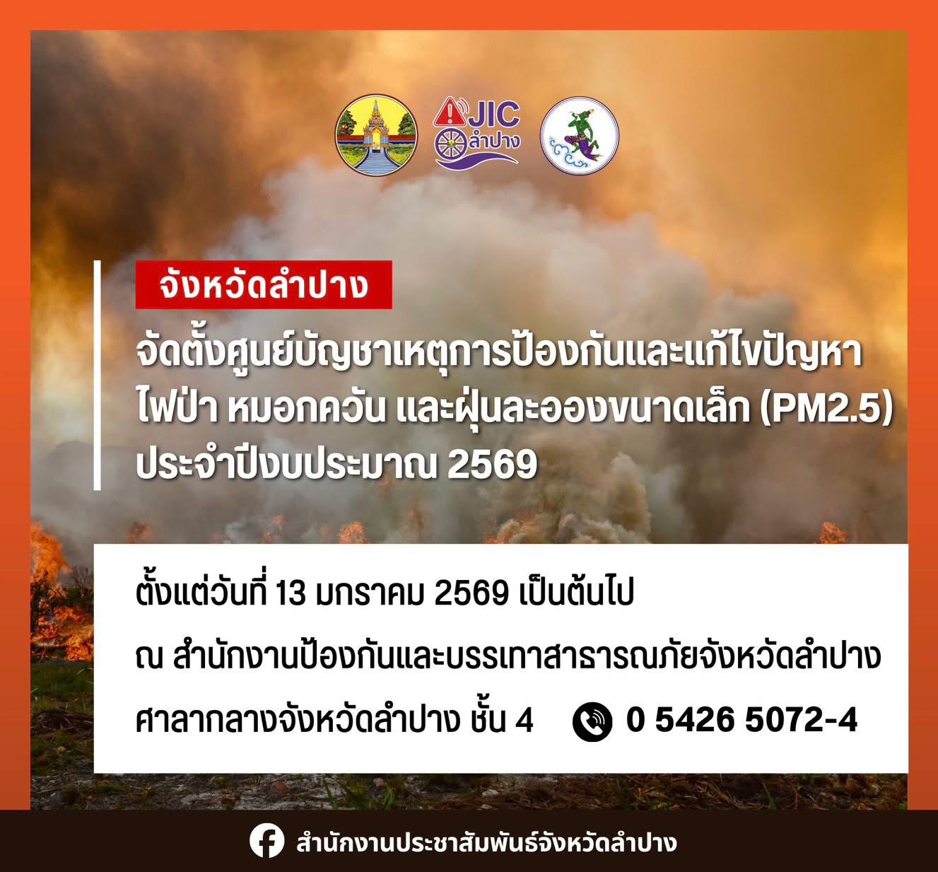 ข่าวสังคมลำปาง จังหวัดลำปางจัดตั้งศูนย์บัญชาเหตุการป้องกันและแก้ไขปัญหาไฟป่า หมอกควัน และฝุ่นละอองขนาดเล็ก (PM2.5) ประจำปีงบประมาณ 2569 บรรณาธิการ ข่าว ม.ค. 13, 2569 0 จ.ลำปาง จัดตั้งศูนย์… อ่านรายละเอียด