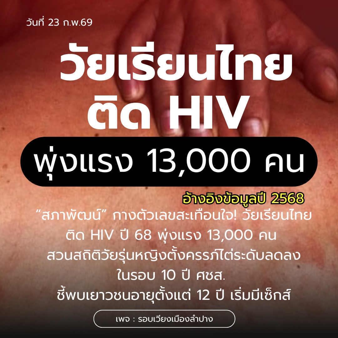 สถานการณ์น่าห่วง! วัยเรียนไทยติดเชื้อ HIV พุ่ง 13,000 คน