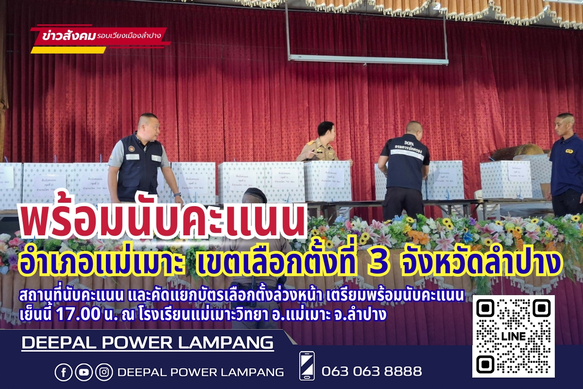 แม่เมาะ‼️ เตรียมพร้อมนับคะแนนเลือกตั้งล่วงหน้า เริ่มนับ 17.00 น. ที่โรงเรียนแม่เมาะวิทยา
