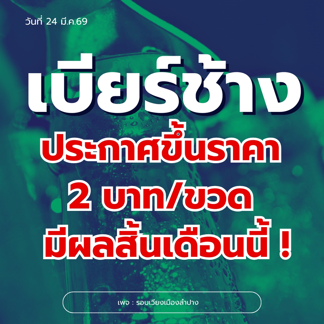 สายดื่มสะดุ้ง! เบียร์ยี่ห้อดัง แจ้งปรับขึ้นราคาขวดละ 2 บาท มีผลสิ้นเดือนนี้วันที่ 24 มี.ค.69 นายสมชา ...